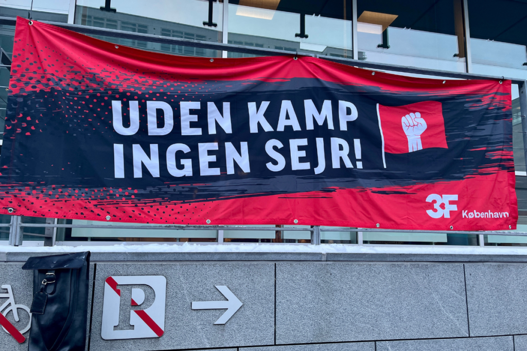 Der var fokus på højere løn, da medlemmer fra en række forbund mødtes foran Kommunernes Landsforening i København for at klappe forhandlerne ind til årets overenskomstforhandlinger for de kommunalt ansatte.