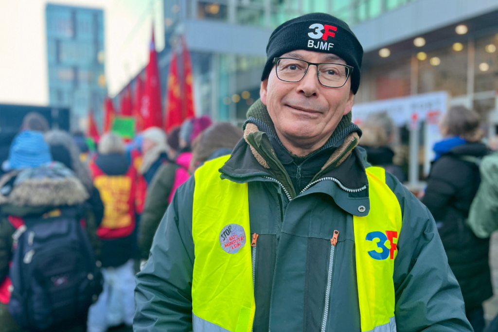 I menneskemylderet under de røde faner var også Nils Hansen mødt op for at vise sin opbakning til forhandlerne. Han største ønske til den kommende overenskomst er mere i løn.