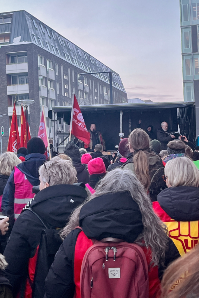 Mange trodsede sne og kulde og var mødt op for at vise solidaritet med de forhandlere, der skal sikre deres arbejdsvilkår fremover.